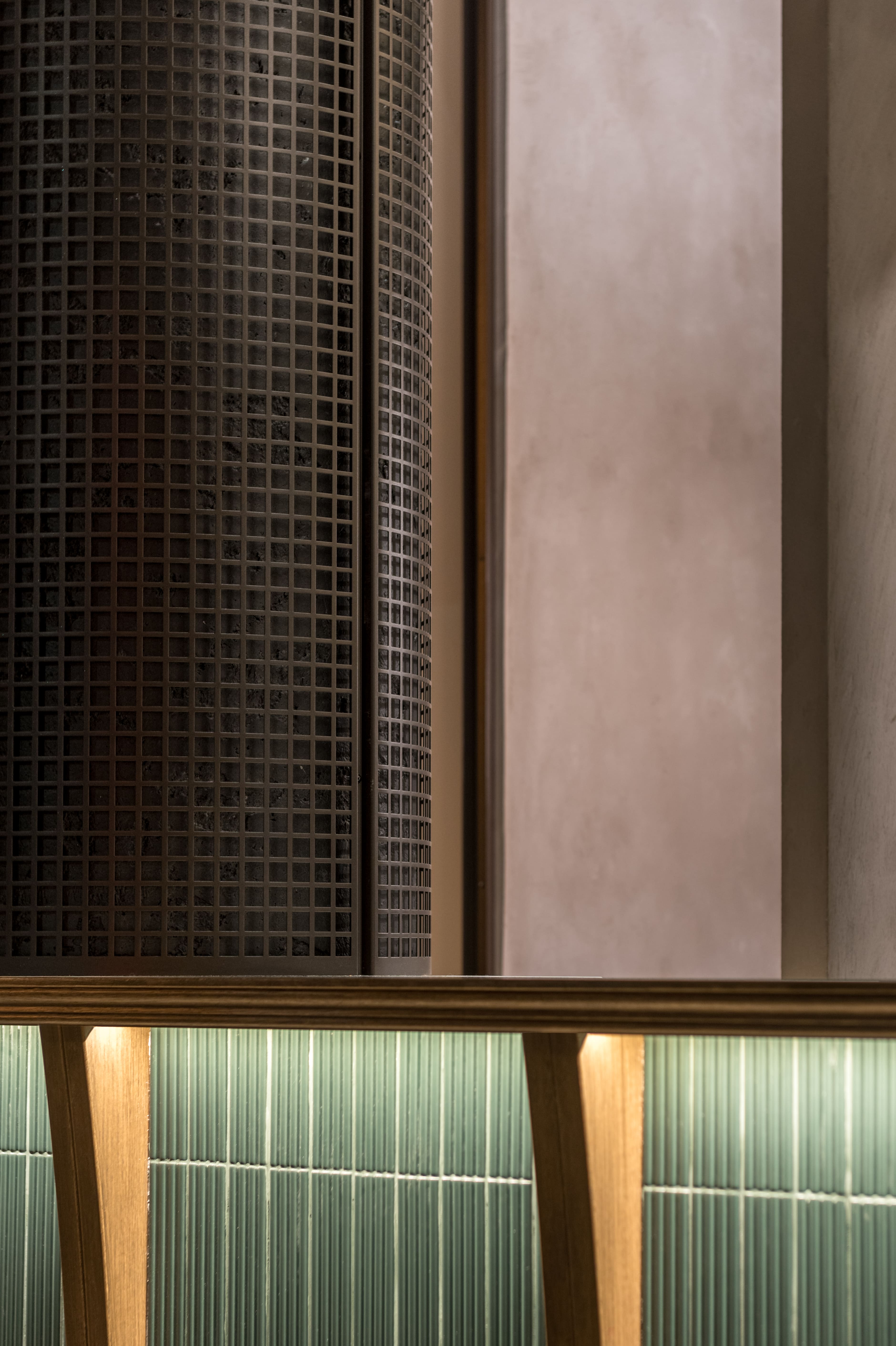 - OAK BAR SUPPORTS AND LININGS + OAK SHELVES IN THE IRONWORK BEHIND THE BAR